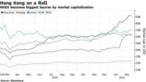 Hong Kong’s Hang Seng also continued its impressive run. HKEX has seen record volumes on Chinese firms finding a new home there over concerns they’d be booted from US exchanges. HKEX is now the world’s biggest bourse by market value, easily beating rival bourses in London and the US.