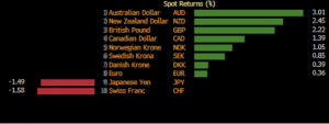 February saw a mostly weaker US dollar, with the greenback only outperforming safe haven currencies the Swiss Franc and Japanese yen. With equity markets rallying and record commodity prices, risk and commodity backed currencies outperformed, with the AUDUSD breaking decisively through its 2023 resistance level of 78c US.